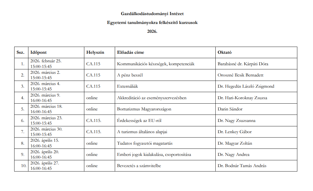 Hamarosan kezdődnek az egyetemi tanulmányokra felkészítő kurzusok a Gazdálkodástudományi Intézetben!